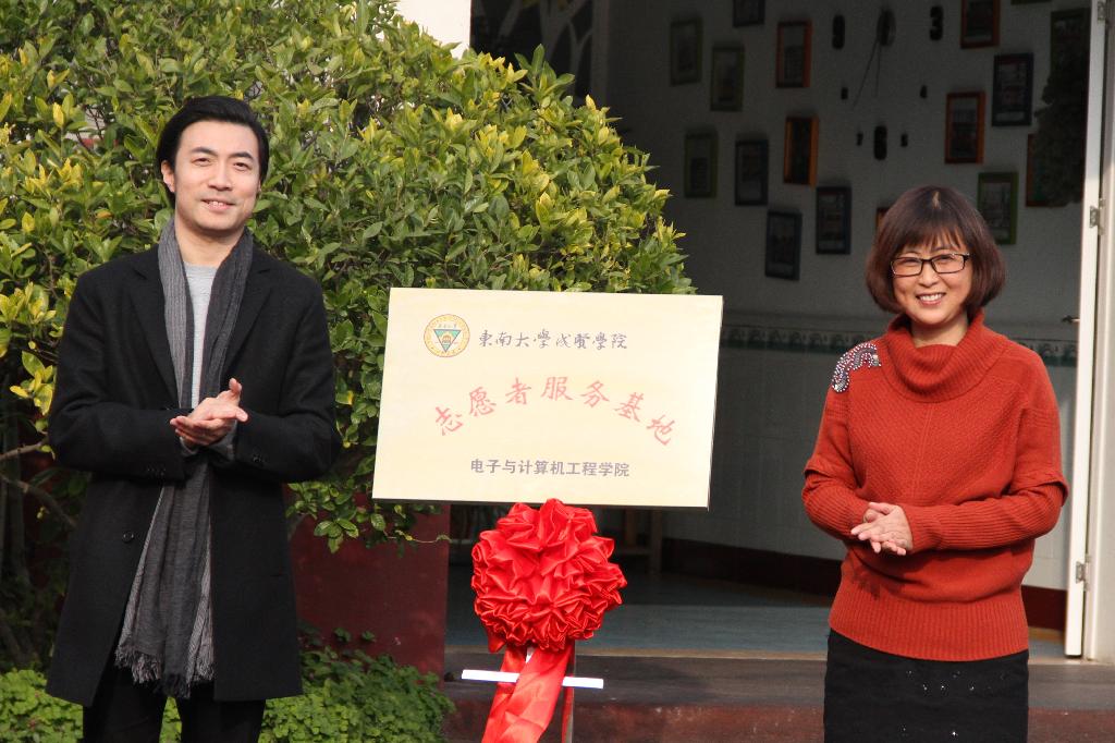 活动伊始,我院分团委书记宋奎老师代表我院领导班长对幼儿园在以往我院志愿活动的支持表示感谢,以及道出了对志愿者的希冀。接着在宋奎老师与王平园长揭开神圣金色的牌匾的那一刻,志愿者们觉得一年的志愿活动得到了肯定,同时志愿者们通过宣誓表达出了自己无私奉献,不怨不悔的决心。最后沿江中心幼儿园园长王平老师讲话中对我院志愿服务活动支持的话语也给志愿者们提供了力量。