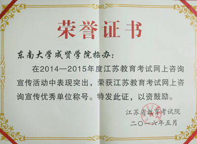 5月9日,2016年江苏省教育考试工作会议在宁召开,来自全省各市县招考办、相关高校负责人及省教育考试院相关处室(中心)同志共计160余人参加了会议。会议总结了全省教育考试宣传工作的成绩和经验,部署2016年全省教育考试宣传工作,同时表彰20所江苏省普通高校为2014-2015年度江苏省教育考试网上咨询宣传优秀单位。我院和南京信息工程大学滨江学院成为获此殊荣的省内独立学院的先进代表。