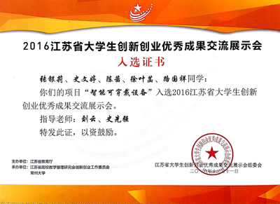 “智能可穿戴设备”项目入选江苏省大创优秀成果交流展