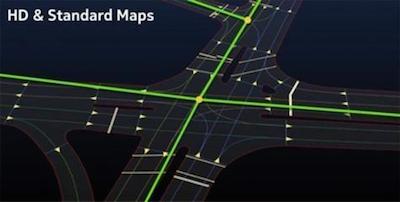 作为诺基亚下一代的数据地图,HD Map借助地图采集车上的LIDAR激光地图技术绘制而成,像素高达6800万。该地图本质上是建立在自动驾驶交通模型上的地图拓展,这些地图是完全三维的,能实时更新当前道路上的汽车节点,能够准确计算最佳的行使速度、路线。三维的好处在于纳入了海拔测量,这可以优化最佳路线的选择问题。
